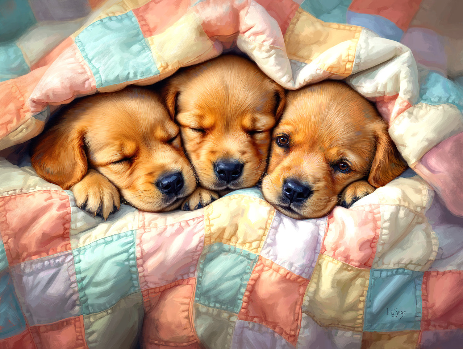 Adorable Puppies 300 pc Jigsaw Puzzle by SunsOut- 300 Piece Jigsaw Puzzle - Completed Size: 18" x 24" - Puzzle Artist: Iris Sage - SunsOut Puzzles are Proudly Made in the USA - Interlocking Pieces and Durable Construction: SunsOut jigsaw puzzles feature interlocking pieces that fit securely, making assembly easier and reducing frustration. Made with high-quality recycled cardboard, they are durable and to easy to work with - Warranty: SunsOut puzzles being made in the USA ensures high manufacturing standards include a worry-free guarantee ensuring any issues with missing or damaged pieces are resolved, reflecting SunsOut's commitment to quality and customer service. - Eco-Friendly Materials: SunsOut puzzles are crafted with eco-friendly materials