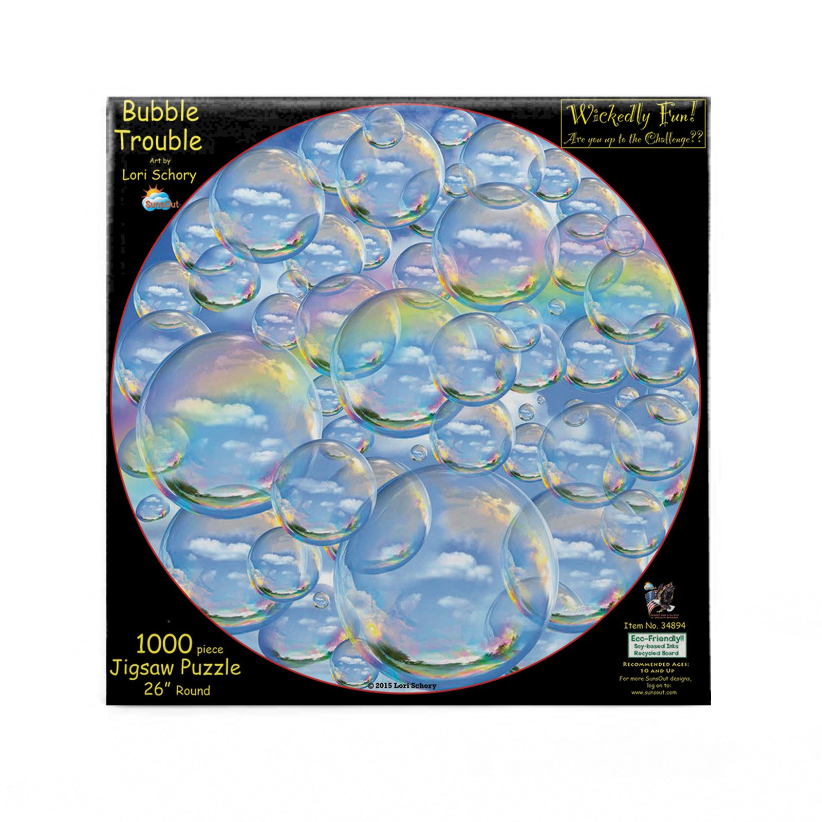Unleash your inner creativity with the whimsical 'Bubble Trouble' 1000 piece jigsaw puzzle from SunsOut, masterfully painted by renowned artist Lori Schory. Engaging visuals pull you into a surreal world, perfect for puzzle enthusiasts looking for a rewarding challenge. The satisfaction that each precisely interlocking piece brings is second to none, focusing on a seamless assembly with high-quality, durable pieces made from recycled cardboard designed to withstand multiple uses. The puzzle is made using eco-friendly soy-based inks and top-quality recycled-board, reflecting SunsOut's dedication to sustainable craftsmanship. Proudly manufactured in the USA, SunsOut maintains high production standards, ensuring consumers receive a top-quality, eco-friendly product backed by a worry-free warranty. Supporting this woman-owned small business supports a community that values artistry, craftsmanship, and woman empowerment. With every purchase of the 'Bubble Trouble' puzzle, you're not only indulging in an invigorating creative escape but also contributing positively to the planet and supporting the dreams of a small business. The magic of puzzle solving intertwines with a story worth connecting with in this eco-friendly, immersive experience.