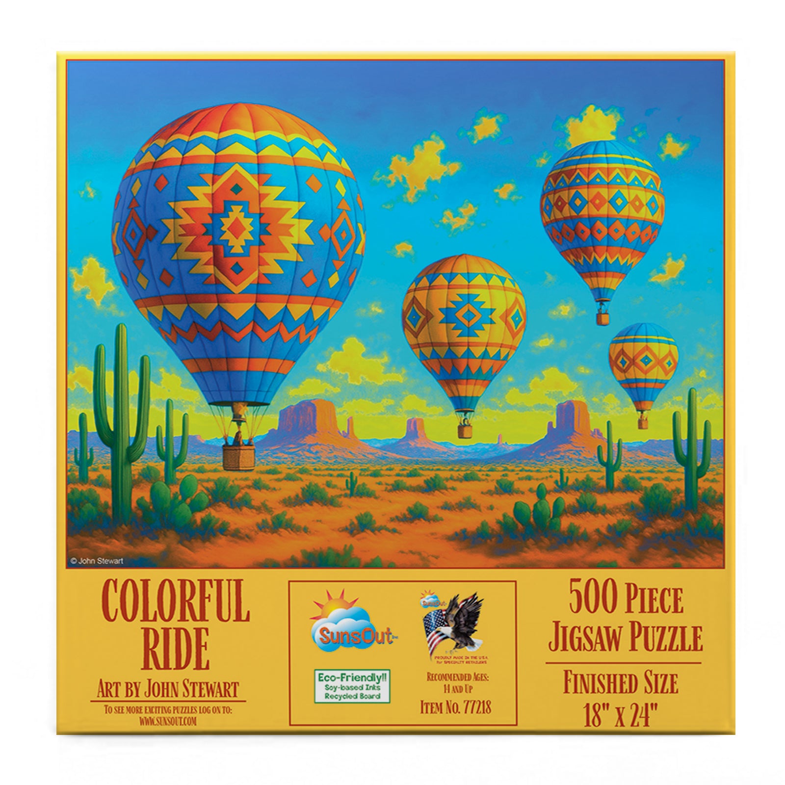 Embark on a whimsical adventure with the "Colorful Ride" 500 Piece Jigsaw Puzzle by SunsOut Puzzles, featuring enchanting artwork by Imagine It Images. This captivating puzzle transports you to a world where vibrant hot air balloons dance against an endless blue sky, providing an escape into imagination and tranquility. Measuring 20" x 27" upon completion, it offers a delightful challenge with precision-crafted interlocking pieces made from high-quality recycled cardboard for easy assembly. SunsOut’s eco-friendly materials, including soy-based inks, ensure radiant colors and durability while promoting sustainability. Proudly made in the USA, each puzzle piece reflects SunsOut's commitment to quality craftsmanship as a woman-owned small business that uses licensed artwork from renowned artists. With a strong focus on high manufacturing standards, SunsOut guarantees customer satisfaction; they promptly resolve any missing piece issues, allowing you to puzzle worry-free. Perfect for adults seeking stress relief and a creative outlet, the "Colorful Ride" puzzle celebrates the beauty of nature, vehicles, and fantasy, promising hours of immersive joy. Unlock the magic of your creativity with this vibrant puzzle, and treat yourself or gift it to someone special to embark on an unforgettable journey filled with artistry and relaxation.
