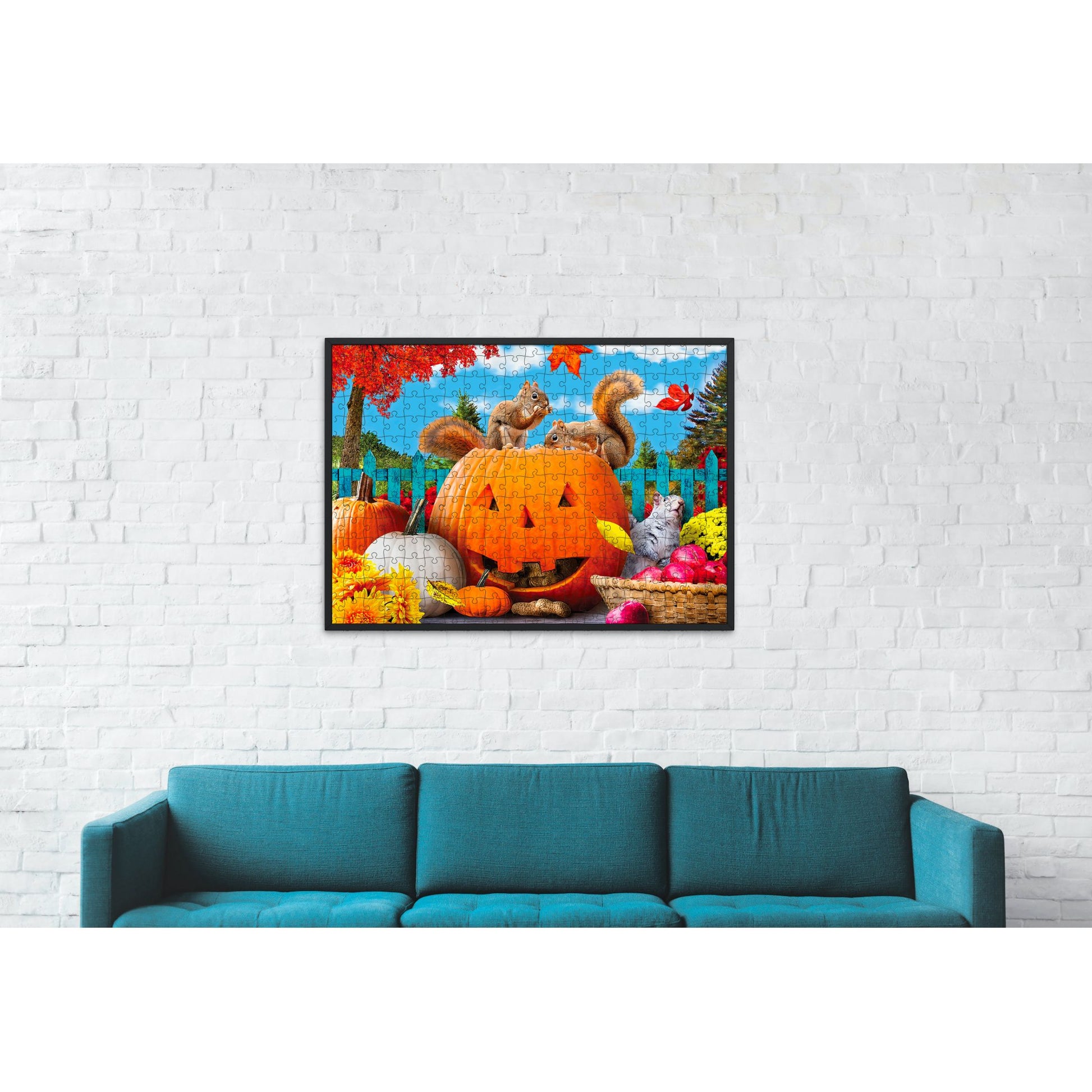 Embrace the magic of fall with the Fall Feast 500 Piece Jigsaw Puzzle by SunsOut Puzzles, a testament to quality and craftsmanship, proudly made in the USA. The intricately interlocking pieces, crafted from durable recycled cardboard, will transport you into a vibrant and heartwarming tapestry of autumn, a scene replete with colorful pumpkins, squirrels, and autumn leaves by artist Karen Burke. The puzzle's crisp, vibrant colors are brought to life with eco-friendly soy-based inks, highlighting SunsOut's commitment to both sustainability and quality. This puzzle, with its large, full-color display box showcasing Burke's fully licensed artwork, serves as both a gift and a celebration of art and tradition, an invitation to embrace the season's beauty and a unique addition to any collection. This woman-owned brand's commitment to exceptional service is manifested in their dedication to quality and creativity; with SunsOut, you're not just completing a puzzle - you're joining a community that values artistry and sustainability alike. Mark the turning seasons and create cherished memories with SunsOut's Fall Feast puzzle. Its unique die cuts and random-shaped pieces present both a challenge and an opportunity for calm reassurance, offering a mindful activity and warmth to any indoor setting, allowing you to unplug, unwind, and reconnect with life's simplest pleasures.