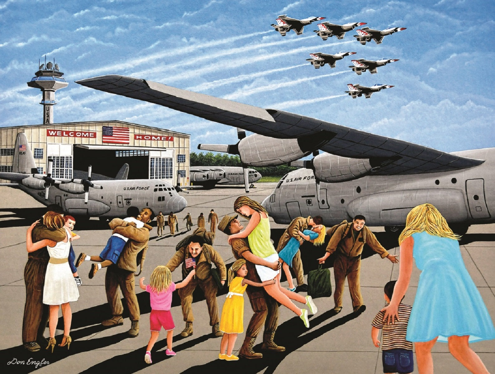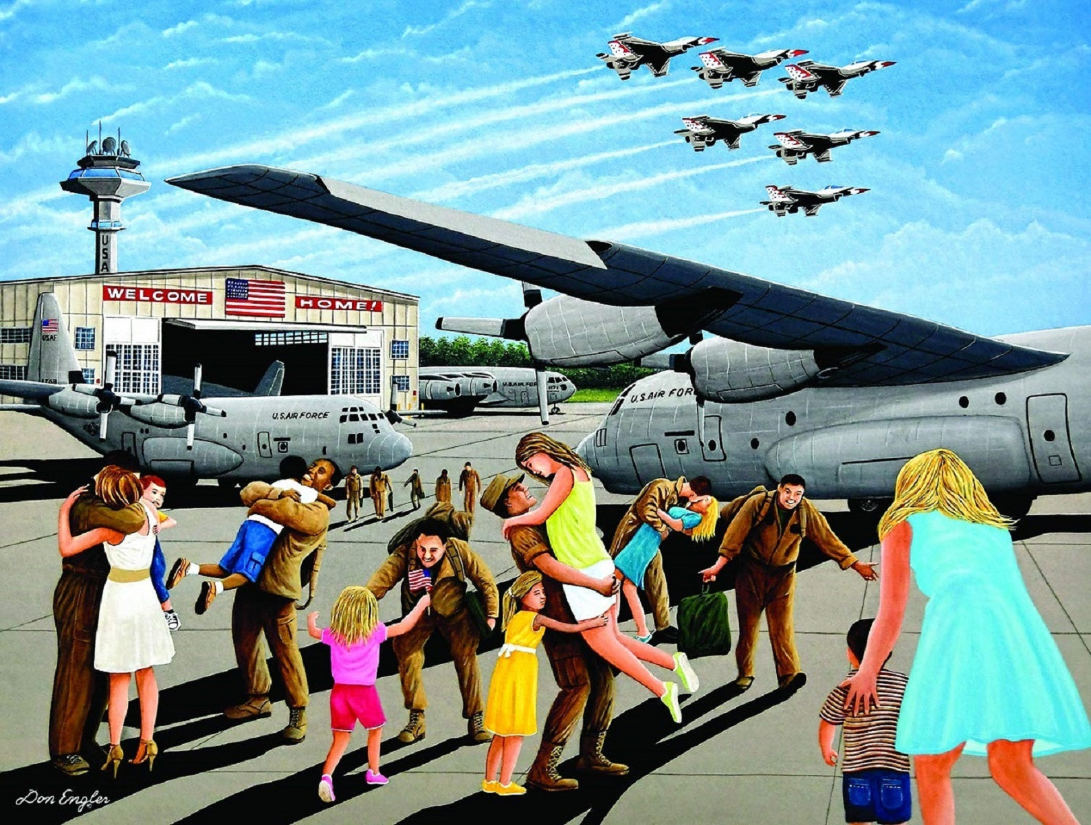 Step into the joy of homecomings with the Family Welcome 500 Piece Jigsaw Puzzle by SunsOut Puzzles. With a completed size of 18" x 24", this high-quality puzzle impeccably captures a heartwarming military reunion in stunning detail. The celebrated artist Don Engler perfectly crafts this piece of American culture, ensuring each interlocking piece fits snugly for an enjoyable puzzle experience. Produced in the USA from top-quality recycled cardboard and eco-friendly soy-based inks, SunsOut Puzzles puts high manufacturing standards at the forefront while supporting local communities. This woman-owned company not only excels in creating captivating puzzles but also promotes eco-conscious production methods, utilizing fully licensed artwork and making each scene a testament to artistic excellence and environmental responsibility. Whether as an attractive gift in our full-color display box or a personal indulgence, this 500-piece puzzle extends beyond a pastime, serving as an immersive journey of creativity and connection that brings a piece of American culture into your home.