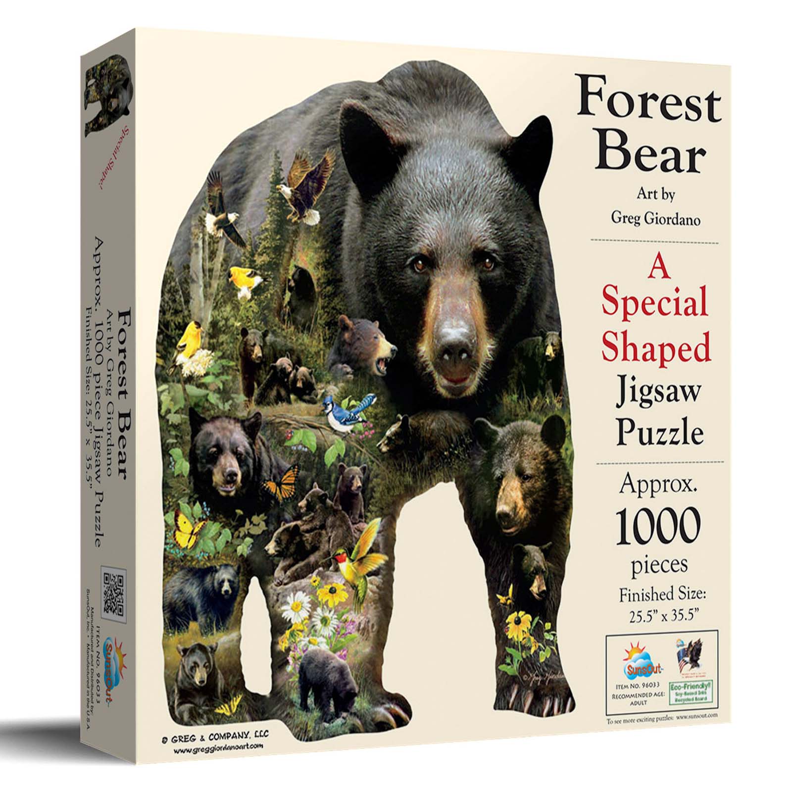 Experience the exquisite enchantment of nature with the Forest Bear 1000 Piece Special Shape Jigsaw Puzzle by SunsOut. Designed for adults, this captivating puzzle, with its awe-inspiring artistry from renowned Giordano Studios, transports puzzle enthusiasts into a tranquil woodland setting. As you piece together the intricately detailed and vibrantly colored puzzle, you'll appreciate its exceptional craftsmanship and the immersive joy it provides. The puzzle's impressive finished dimensions of 25.5" x 35.5" add to its allure, making it a true masterpiece and a work of art. Crafted with precision, the puzzle boasts interlocking pieces made from high-quality recycled cardboard that ensures durability and a seamless fit. SunsOut demonstrates its commitment to sustainability by using eco-friendly materials and soy-based inks, reducing environmental impact without compromising on quality. The company is a woman-owned small business proudly based in the USA, embodying American craftsmanship in every puzzle. SunsOut offers a worry-free guarantee, pledging a swift resolution to any issues with missing or damaged pieces to ensure your complete satisfaction. The Forest Bear puzzle, a testament to artistic dedication and top-tier materials, is the perfect addition to any collection or as a thoughtful gift, bringing joy to puzzle lovers while promoting environmental responsibility and quality assurance.