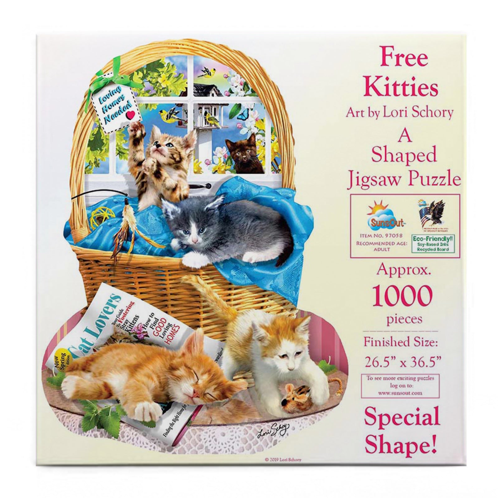 - 1000 Piece Special Shape Jigsaw Puzzle - Completed Size: 26.5" x 36.5" - Puzzle Artist: Lori Schory - SunsOut Puzzles are Proudly Made in the USA