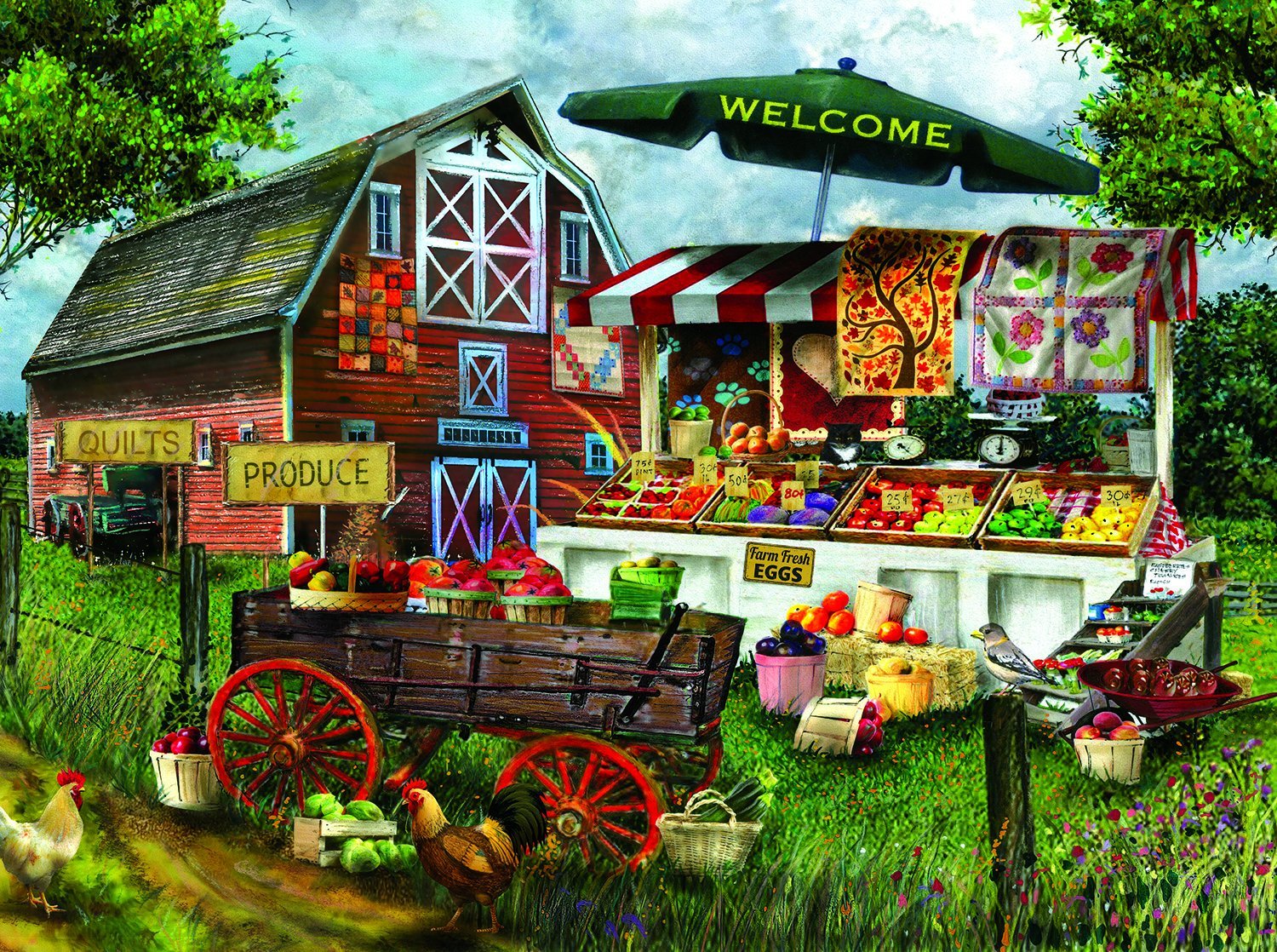 Immerse yourself in the serene beauty of rural life with the Fresh Country Produce 1000 Piece Jigsaw Puzzle by SunsOut. Rendered by the skilled hands of artist Tom Wood, this high-quality puzzle created from recycled cardboard offers an escape into an idyllic countryside market scene, complete with vibrant detailing that showcases Wood's artistic talent. The quality interlocking design of each piece ensures ease and enjoyment in assembly, perfect for those seeking respite from the daily grind. Designed with sustainability in mind, SunsOut puzzles utilize soy-based inks and recycled materials—a reflection of the company's commitment to eco-friendly craftsmanship. As a proudly made in the USA product, the puzzle adheres to stringent quality standards. And to give you peace of mind, SunsOut provides a worry-free guarantee, promising swift solutions in the rare event of compromised puzzle pieces. Moreover, your purchase contributes positively to a woman-owned small business, allowing you to revel in the knowledge that your puzzling passion has made an impact beyond personal enjoyment, promoting both exceptional craftsmanship and values of empowerment.