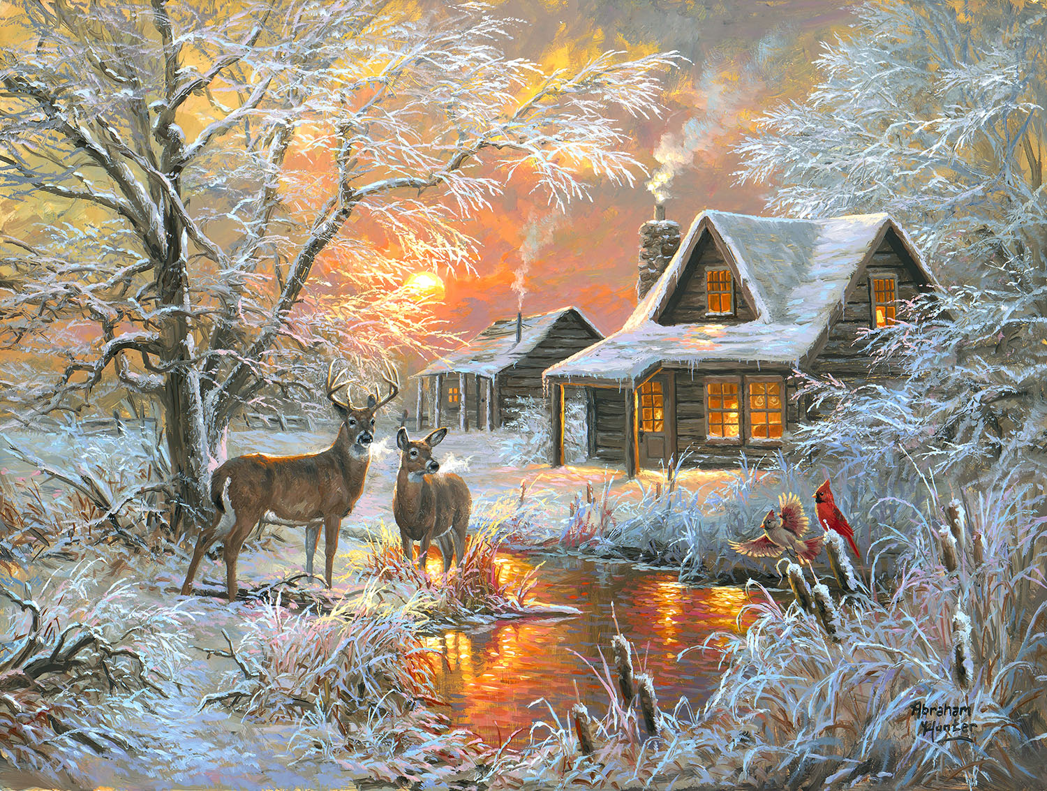 - Puzzle artist: Abraham Hunter lives in Knoxville, Tennessee with his wife Whitney and their son. Abraham Hunter is an award-winning artist with a Federal Jr. Duck Stamp win, and multiple wildlife conservation groups’ Art Print of the Year designations. Hunter works in oil, acrylic, and watercolor and strives for extreme photorealism.