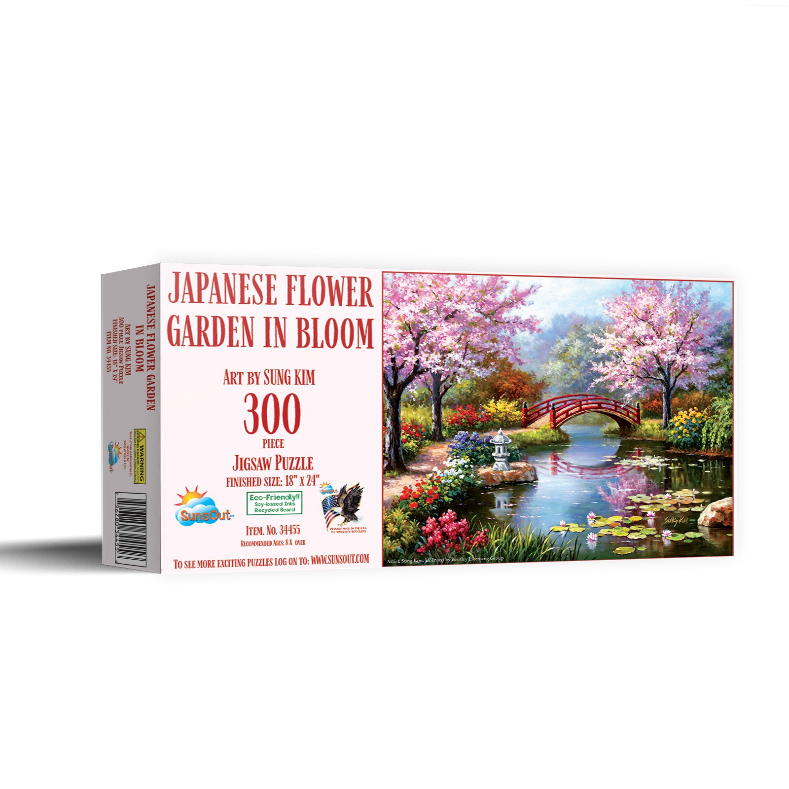 Dive into the tranquillity of the Japanese Garden in Bloom 300 Piece Jigsaw Puzzle, where each piece, crafted from high-quality recycled cardboard by SunsOut Puzzles, discloses the serene beauty of a peaceful garden scene painted by renowned artist Sung Kim. The puzzle measures 18" x 24" when completed and depicts an oasis of cherry blossoms and serene waters to provide a calming escape. Proudly made in the USA, this product assures durability and sustainability with its eco-friendly materials, including soy-based inks that enhance the vibrancy of the exquisite artwork. SunsOut Puzzles also supports local manufacturing and offers a worry-free guarantee for missing or damaged pieces to ensure an enjoyable puzzling experience. The 300-piece puzzle beautifully captures the essence of tranquil nature, making it an ideal keepsake for art enthusiasts and puzzle lovers alike. The purchase of this jigsaw puzzle also supports a women-owned small business passionate about quality and sustainability. More than just entertainment, piecing together this puzzle offers a journey into serenity, providing a sense of accomplishment and inner calm, whether enjoyed individually or with loved ones.