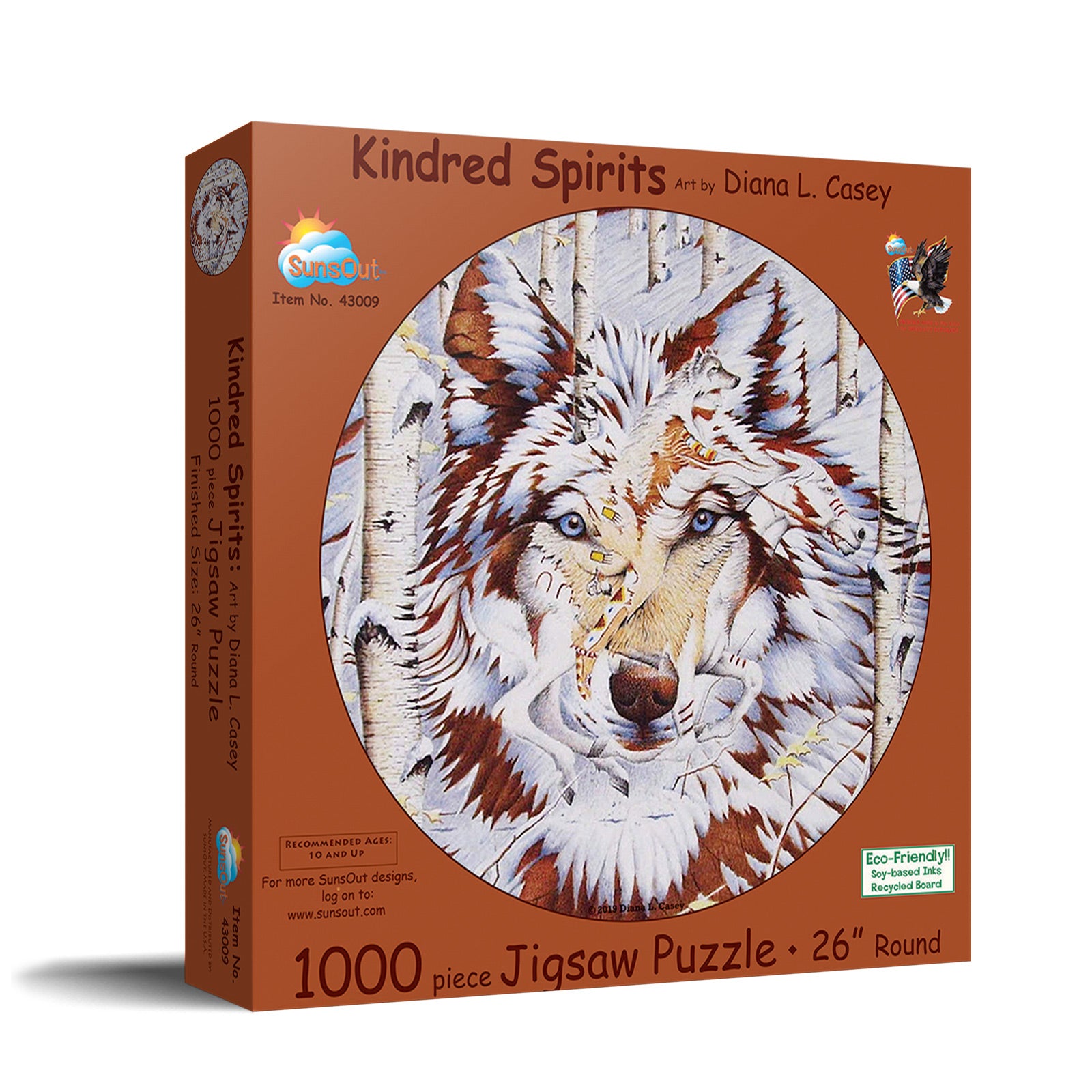 Unleash your inner artist and dive into a serene world of creativity with the SunsOut Inc Kindred Spirits 1000 piece Jigsaw Puzzle, designed by the famed artist, Diana Casey. This beautiful, 26-inch round puzzle takes you on an exciting journey through compelling animal-themed artwork, offering a challenging, yet captivating experience perfect for discerning adult puzzle enthusiasts. Each piece, made from high quality, eco-friendly materials, is as durable as it is enjoyable, reflecting SunsOut's testament to sustainable practices, using responsibly-sourced recycled cardboard and soy-based inks. Be part of SunsOut's commitment to excellence, a woman-owned small business that resonates with puzzle lovers worldwide with their superior customer service and quality products, offering a worry-free guarantee. Proudly made in the USA, this puzzle embodies the highest manufacturing standards, reflecting American craftsmanship and a commitment to local production. The SunsOut Kindred Spirits puzzle offers more than just leisure, it serves as a quiet escape from everyday life. Experience the tactile pleasure of interlocking seamlessly-fitting pieces and the rewarding accomplishment upon completion. Enjoy the beauty of the artwork guiding you through a meditative process, order your SunsOut Kindred Spirits puzzle today and embark on an artistic adventure!