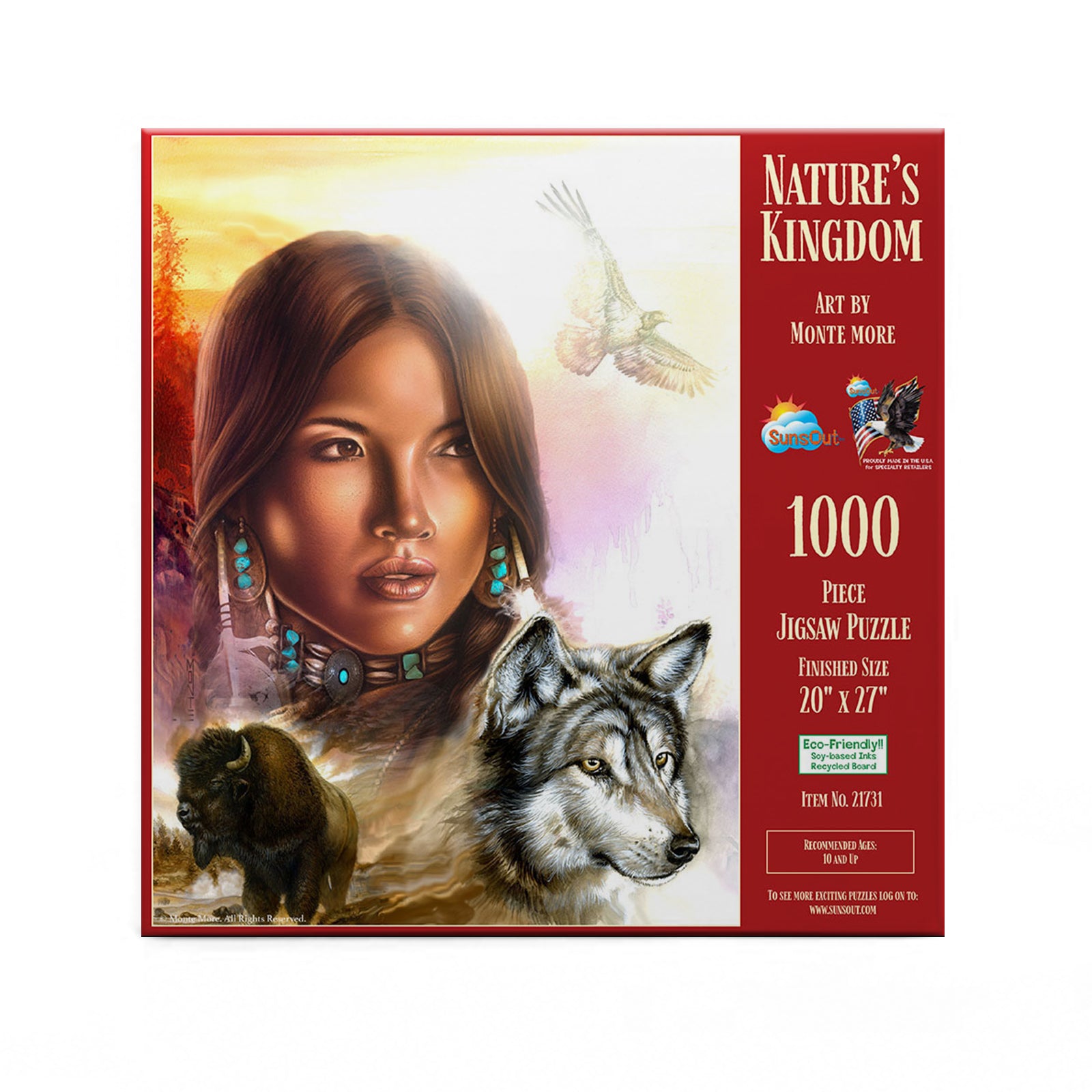 Embark on an enchanting journey into the harmonious beauty of wildlife and Americana with the "Nature's Kingdom 1000 Piece Jigsaw Puzzle" by SunsOut. Meticulously crafted by Monte Moore, this puzzle becomes a stunning 20" x 27" masterpiece, perfect for any room. The interlocking pieces, made from high-quality recycled cardboard, ensure a seamless and enjoyable puzzle-building experience for both seasoned puzzlers and beginners. SunsOut's puzzles are crafted with eco-friendly soy-based inks and premium recycled-board materials, in a commitment to sustainability. The vibrant images, featuring the fully licensed artistry of Monte Moore on a large, full-color display box, speak to the artistic brilliance SunsOut delights in as a woman-owned small business proudly based in the USA. With a worry-free guarantee to swiftly resolve issues with missing or damaged pieces, SunsOut puts customer satisfaction first. Escape into a world of relaxation, beauty, and pride with SunsOut's "Nature's Kingdom 1000 Piece Jigsaw Puzzle"—an enriching, eco-friendly pastime.