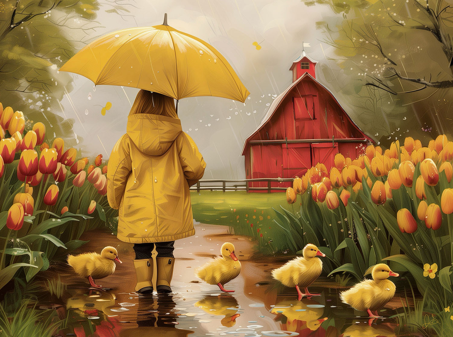 Discover the serene world of the Rainy Day Walk 1000 piece jigsaw puzzle. Created by renowned artist John Stewart, this puzzle offers so much more than just a pastime. It features soothing natural imagery, from charming ducks to blossoming tulips under an umbrella, creating a picturesque scene of a rainy day walk. The pieces of this SunsOut puzzle interlock seamlessly thanks to their superior design, ensuring a frustration-free assembly. Crafted from high-quality, eco-friendly materials, it's made with respect for nature and uses soy-based inks and high-quality, recycled cardboard. Once completed, this 20" x 27" artwork stands as an exquisite addition to any collection or a thoughtful gift, beautifully contained in a full-color display box. Made in the USA, it's part of SunsOut's commitment to quality, and their puzzles come with a guarantee to resolve any issues related to missing or damaged pieces. As a woman-owned small business, SunsOut takes immense pride in the craftsmanship of their products. The Rainy Day Walk puzzle transforms ordinary afternoons into an immersive journey through art and nature, promising hours of enjoyment and the profound joy of connecting with John Stewart's captured beauty.