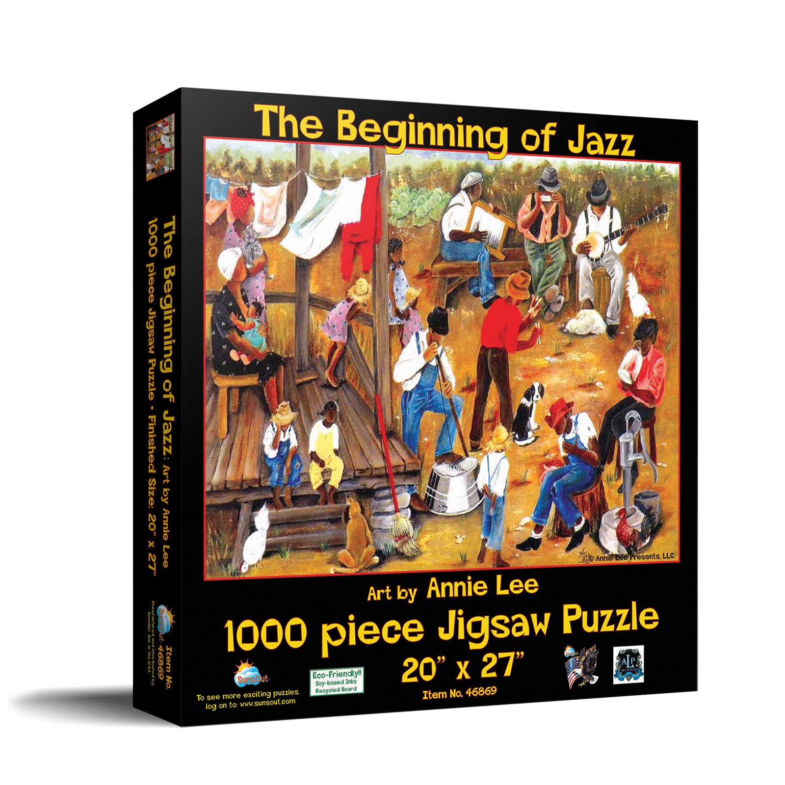 Discover the Melody with "The Beginning of Jazz" 1000 Piece Jigsaw Puzzle by SunsOut, a jazz-inspired masterpiece that perfectly captures the essence of Americana and music. Crafted in the USA with high-quality, recycled cardboard, each piece fits seamlessly with interlocking precision, offering a satisfying, eco-friendly puzzle experience. This sustainable masterpiece, featuring the vibrant artwork of Annie Lee, provides a harmonious blend of color and story, creating a captivating tableau that resonates with every jazz enthusiast. Constructed with durability for endless enjoyment, the puzzle comes with a large, full-color display box for storage and serves as an eye-catching keepsake. SunsOut's dedicated customer service guarantees satisfaction; if there are missing or damaged pieces, issues are readily resolved. This reflects SunsOut’s commitment to quality and service as a woman-owned small business. Annie Lee's fully licensed artwork infuses the puzzle with cultural richness, creating a journey through the jazz era rather than just an activity. "The Beginning of Jazz" puzzle, measuring 20" x 27" when completed, is an inspiring addition to your collection whether you're a puzzle aficionado, a lover of jazz, or seeking a new pastime. Embark on this engaging journey through history and let the jazz-inspired puzzle captivate your senses again and again.
