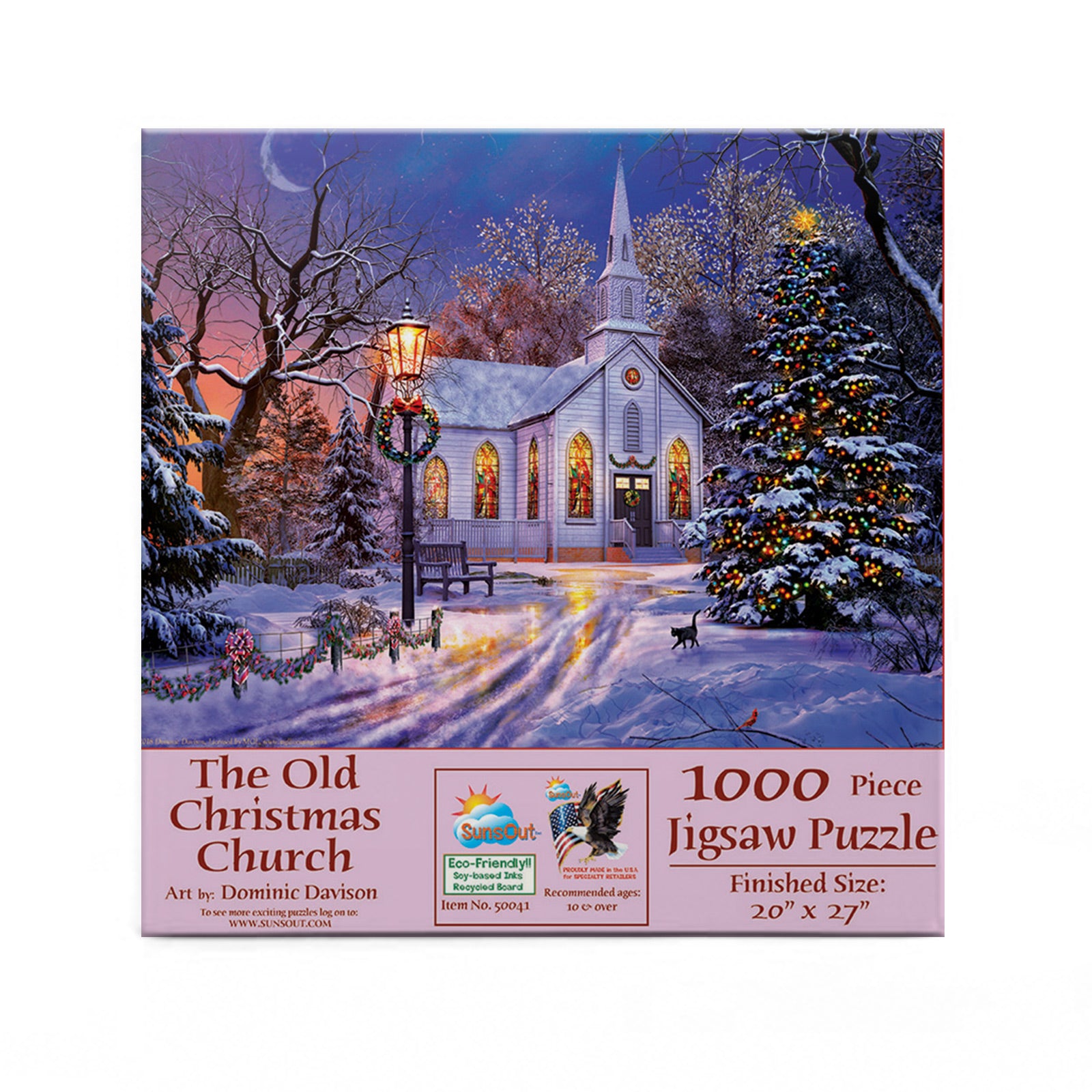 Experience the magic of Christmas with The Old Christmas Church 1000 Piece Jigsaw Puzzle from SunsOut. This serene winter scene, beautifully captured by renowned artist Dominic Davison, offers a glimpse into a peaceful country evening, all within a 20" x 27" puzzle - perfect for those cozy winter nights. SunsOut puzzles are known for their exceptional interlocking pieces, crafted from high-quality recycled cardboard, ensuring every puzzle fits seamlessly for enjoyable assembling. Committed to eco-friendly practices, SunsOut uses soy-based inks for printing on recycled board, contributing to a more sustainable future. Each puzzle is a reflection of meticulous American craftsmanship and comes with a worry-free guarantee. Should there be any missing or damaged pieces, SunsOut's dedicated customer service will resolve the issues swiftly for your complete satisfaction. This puzzle, apart from offering a rewarding challenge, is also a stunning representation of Davison's exquisite festive artistry, making it a perfect Christmas decor. Embrace the joy of puzzling with SunsOut, a proudly woman-owned small business, promoting high-quality craftsmanship and community values. Enjoy this delightful puzzle during the holiday season, whether as a perfect gift or a personal pleasure, and create cherished winter memories.