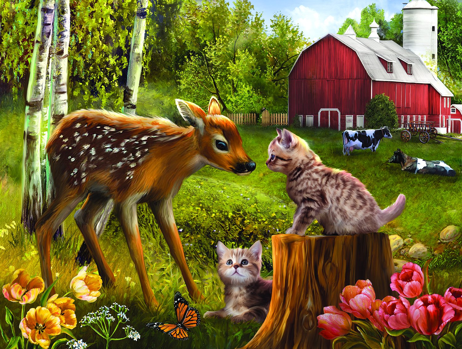 Escape into the serene tranquility of the countryside with the 500 Piece Jigsaw Puzzle "Want to be Friends" by SunsOut. This enchanting puzzle, featuring the heartwarming artwork of Tom Wood, depicts the charming interactions between farm animals under a radiant blue sky. Proudly made in the USA, each piece of this 18" x 24" puzzle interlocks seamlessly, offering a fulfilling experience crafted from high-quality recycled cardboard, ensuring durability for endless re-creation. More than just a pastime, SunsOut’s eco-friendly puzzles combine sustainability and artistry, using soy-based inks and premium recycled-board, signifying a commitment to not just the love of puzzles but to our cherished planet as well. As you place each piece, lose yourself in the idyllic farm setting, exploring the playful bond between adorable kittens and a curious fawn, instilling both creativity and calm. SunsOut assures a worry-free puzzle experience with a strong commitment to exceptional customer service, swiftly resolving concerns regarding missing or damaged pieces, backed by a guarantee ensuring your total satisfaction. By purchasing, you support a proud woman-owned small business that values innovation and community, continuously bringing joy and artistry into homes nationwide. The "Want to be Friends" jigsaw puzzle is designed to ignite your imagination and nurture your appreciation for the natural world.