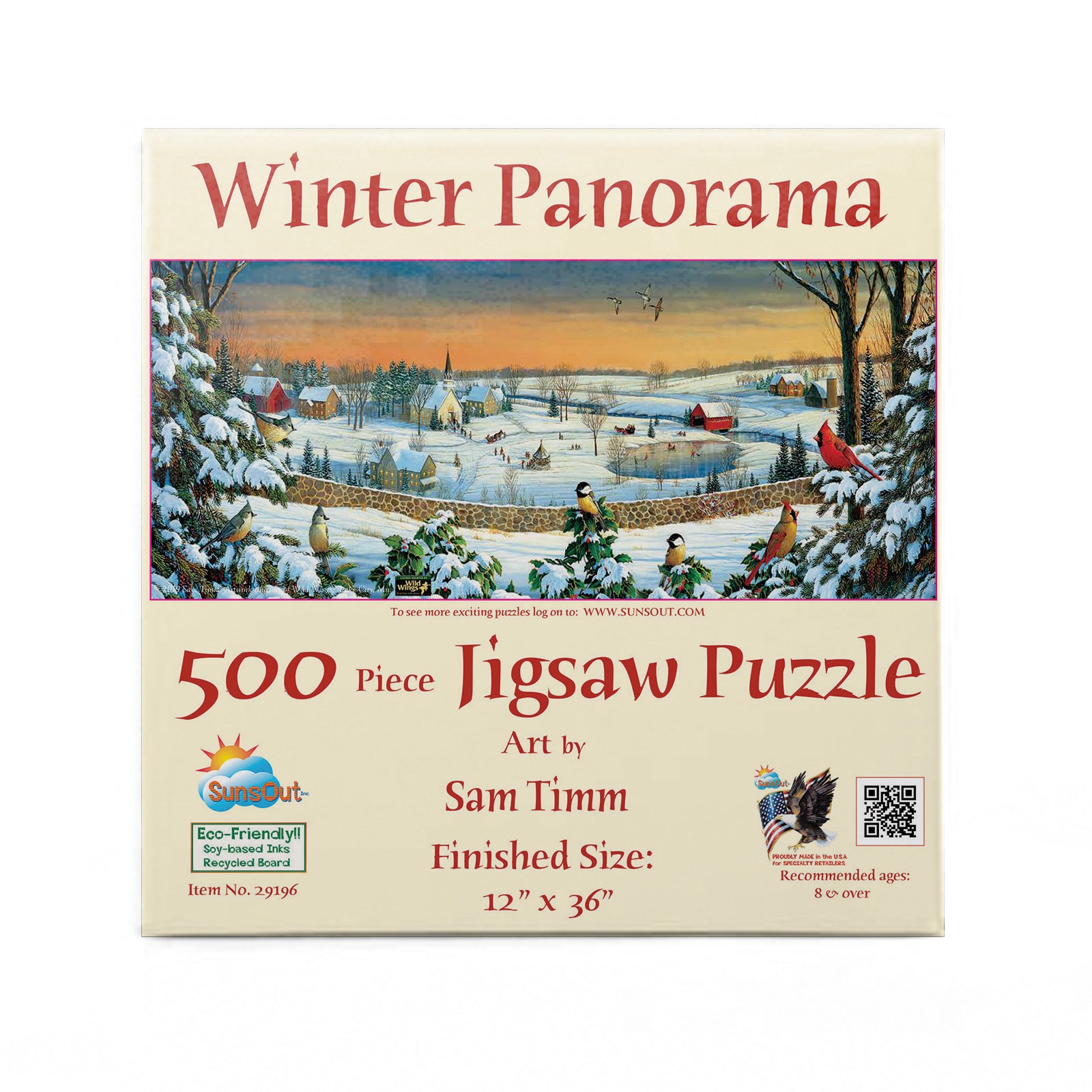 Immerse yourself in a breathtaking winter wonderland with SunsOut Puzzles' Winter Panorama 500 Piece Jigsaw Puzzle, perfectly capturing the serenity of snow-covered landscapes and festive cheer. This enchanting scene, brought to life by artist Sam Timm, transforms your table into a snowy escape filled with tranquility and the holiday spirit without leaving the comfort of your home. Our puzzles are meticulously crafted, ensuring a snug fit of interlocking pieces, thus minimizing frustration and maximizing enjoyment. Made with high-quality recycled cardboard, each piece offers a seamless and satisfying experience. As for the environment, SunsOut Puzzles utilizes eco-friendly materials, incorporating soy-based inks and recycled-board to create vibrant, durable images that respect the planet. This way, you contribute to a sustainable future while being entertained. Experience this superior quality and craftsmanship, all proudly made in the USA, and backed by a worry-free guarantee to swiftly resolve any issues with missing or damaged pieces. This commitment allows you to focus entirely on the joy of puzzling, assured by a brand that genuinely cares. The Winter Panorama puzzle is much more than just a puzzle; it’s an enamoring gift that captivates the imagination and warms the heart, making it the perfect addition to any holiday celebration or winter gathering.